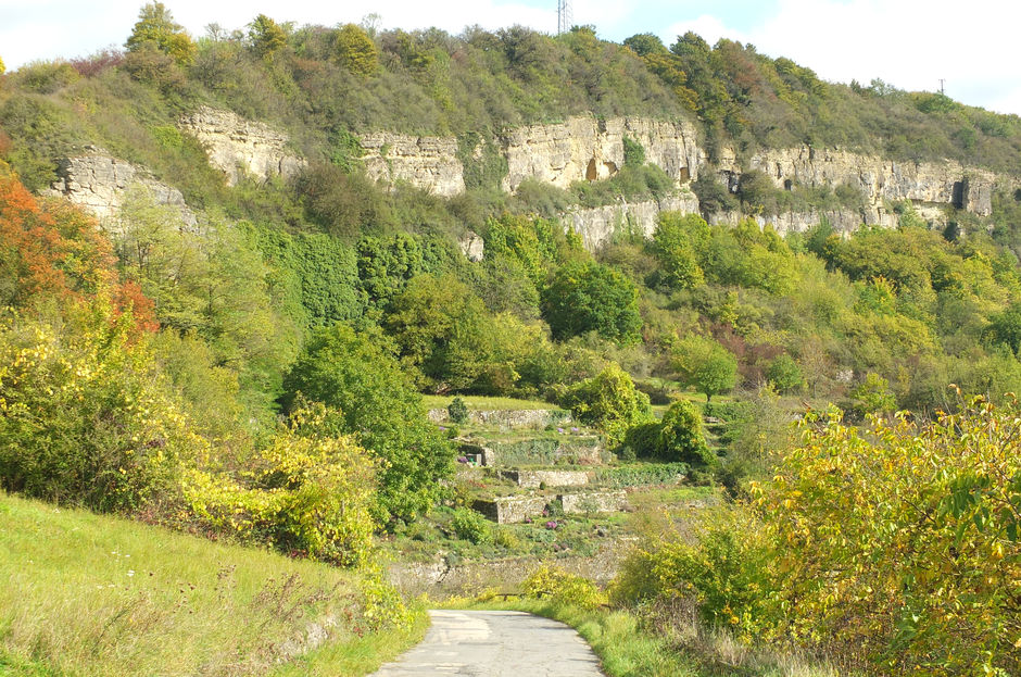 Unser Felsengarten war früher einmal ein Weinberg und hier kann man noch erkennen, wie in grauer Vorzeit Weinbau betrieben wurde. Mit großen Trockenmauern wurde der Hang in Terrassen eingeteilt. Irgendwann lohnte sich der ganze Aufwand nicht mehr und der Weinberg fiel in einen Dornröschenschlaf.
